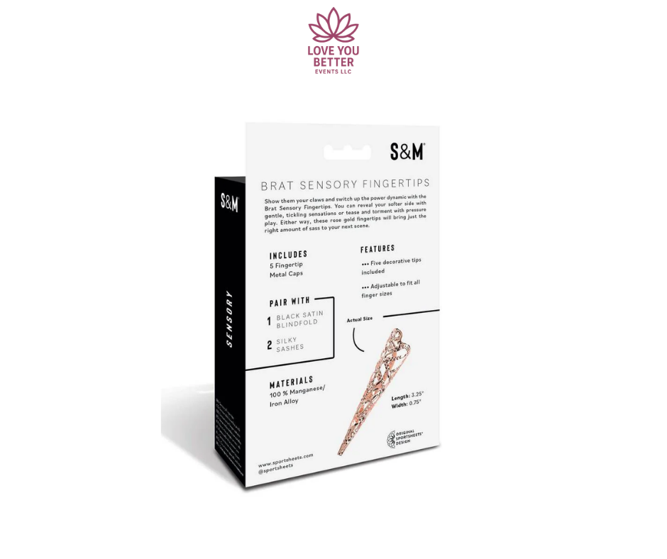 Show them your claws and switch up the power dynamic with the Brat Sensory Fingertips. You can reveal your softer side with gentle, tickling sensations or tease and torment with pressure play. Either way, these rose-gold fingertips will bring just the right amount of sass to your next scene.