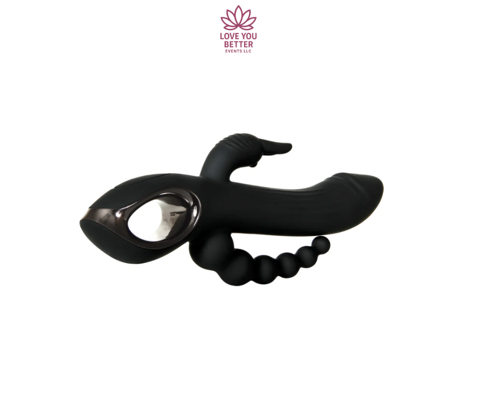 Stimulate three erogenous zones at once to experience other-worldly pleasure that will leave your knees weak. The realistic phallic-shaped main shaft delivers powerful internal vibrations while the clitoral stimulator buzzes your climax zone with hard-working bunny ears. Meanwhile, the beaded anal shaft gently and gradually slips inside yourback door to complete the tantalizing trifecta of pleasure!