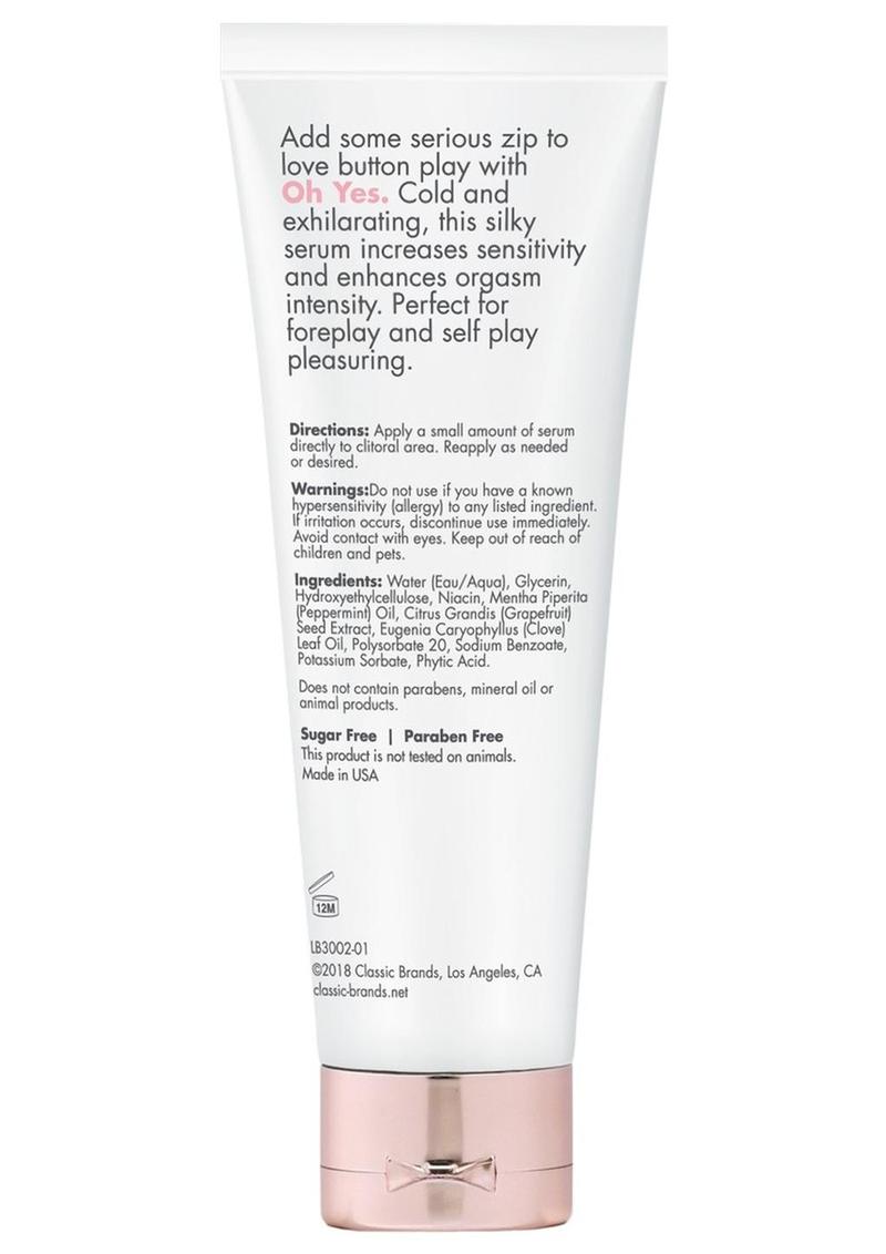 Oh Yes Clitorial Stimulate Cooling and Tingling. Apply a pea sized amount to the tip of the clitoisl to enhance desire and increase sensations. Apply a pea sized amount to increase clitorail erections and enhance multiple orgasms!