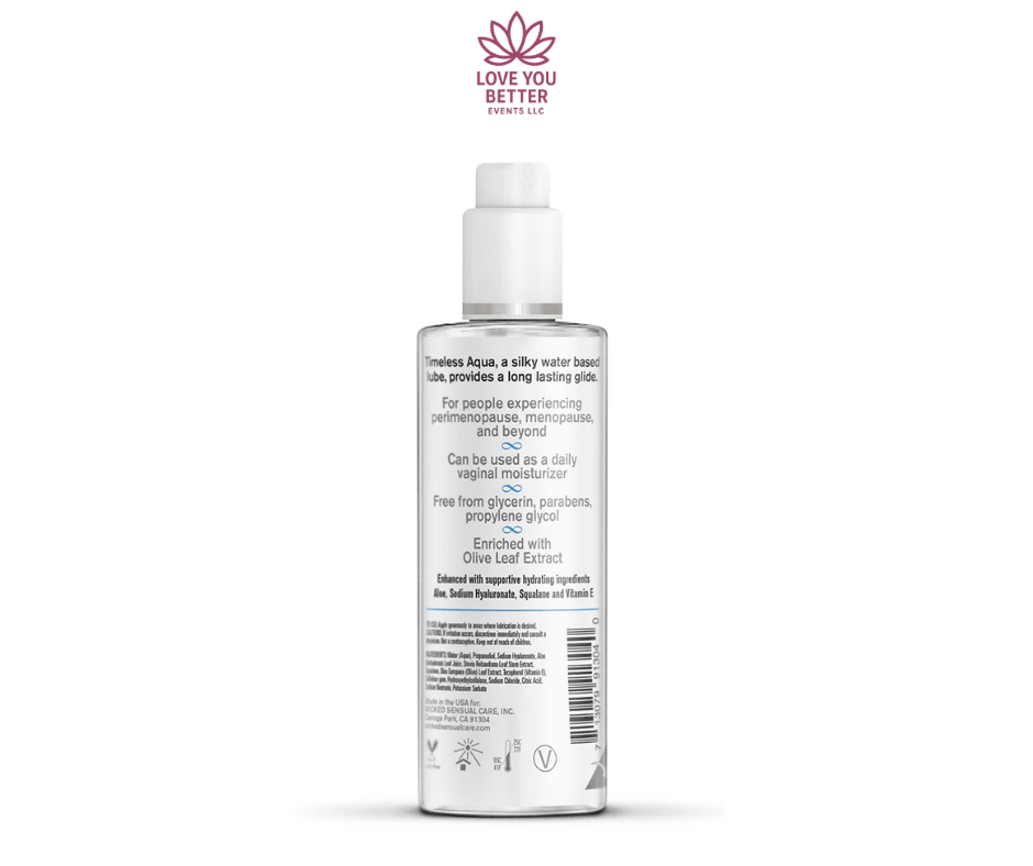 simply® Timeless lube is uniquely formulated to address the specific needs of individuals during the perimenopausal and menopausal stages and beyond. Each formula contains ingredients that can help alleviate dryness and promote a more comfortable and satisfying intimate experience. Each lube contains supportive ingredients like aloe, olive leaf extract, squalane, and Vitamin E. These supportive ingredients are what makes it different from the rest of the simply® line. Like all products under the simply® label, Timeless formulas are free from glycerin, parabens, and propylene glycol. Can also be used as a daily vaginal moisturizer.