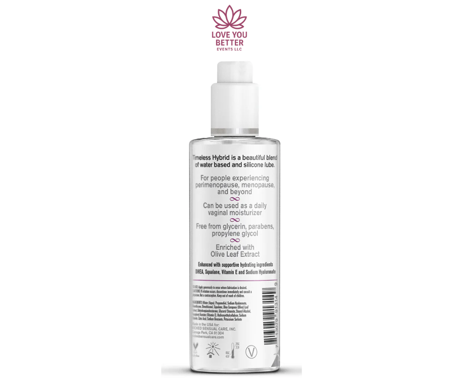 simply® Timeless lube is uniquely formulated to address the specific needs of individuals during the perimenopausal and menopausal stages and beyond. Each formula contains ingredients that can help alleviate dryness and promote a more comfortable and satisfying intimate experience. Each lube contains supportive ingredients like aloe, olive leaf extract, squalane, and Vitamin E. These supportive ingredients are what makes it different from the rest of the simply® line. Like all products under the simply® label, Timeless formulas are free from glycerin, parabens, and propylene glycol. Can also be used as a daily vaginal moisturizer.